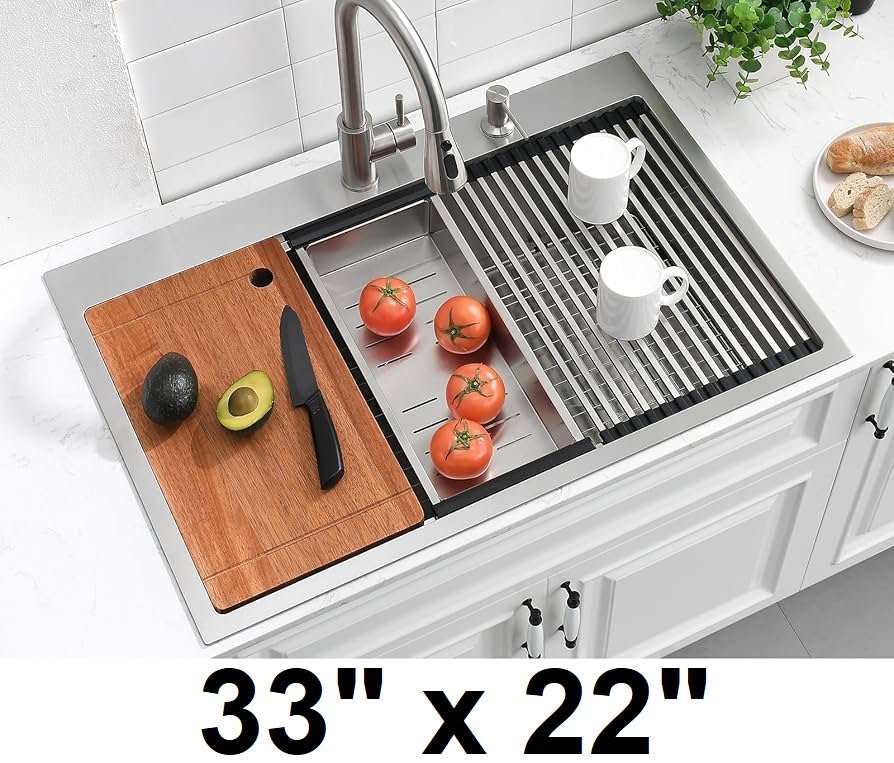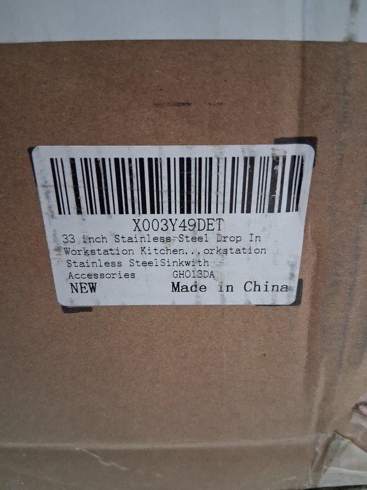 Gabhar Stainless Steel Single Bowl Drop in Workstation Kitchen Sink - 33" x 22" - silver (model: gh013da)