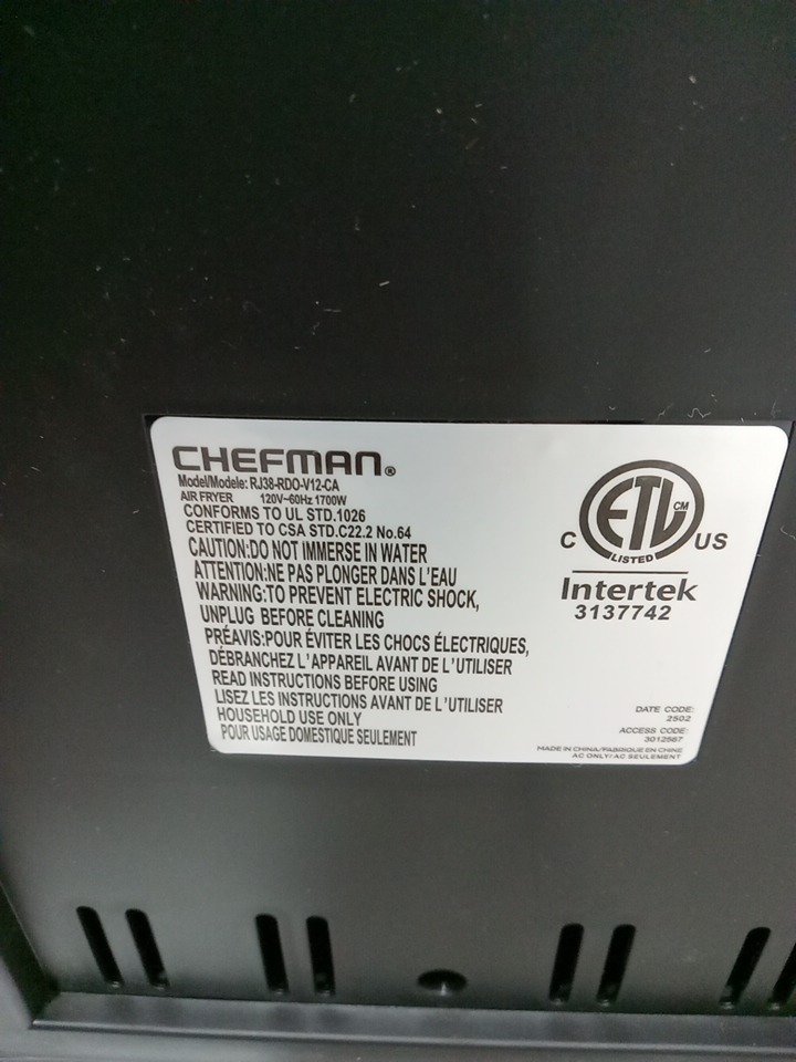 chefman 6-in-1 digital air fryer oven - 12qt capacity - black (model: rj38-rdo-v12-ca)
