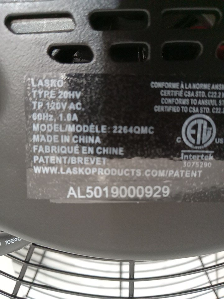 Lasko 20" High Velocity Floor / Wall Mount Fan - Black (MODEL: 2264QMC)