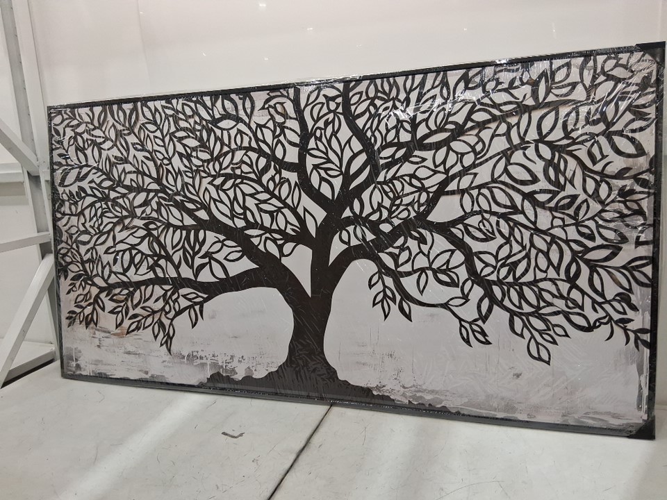 Framed Tree of Life Abstract Wall Art - 58" x 29.5" - Black/White