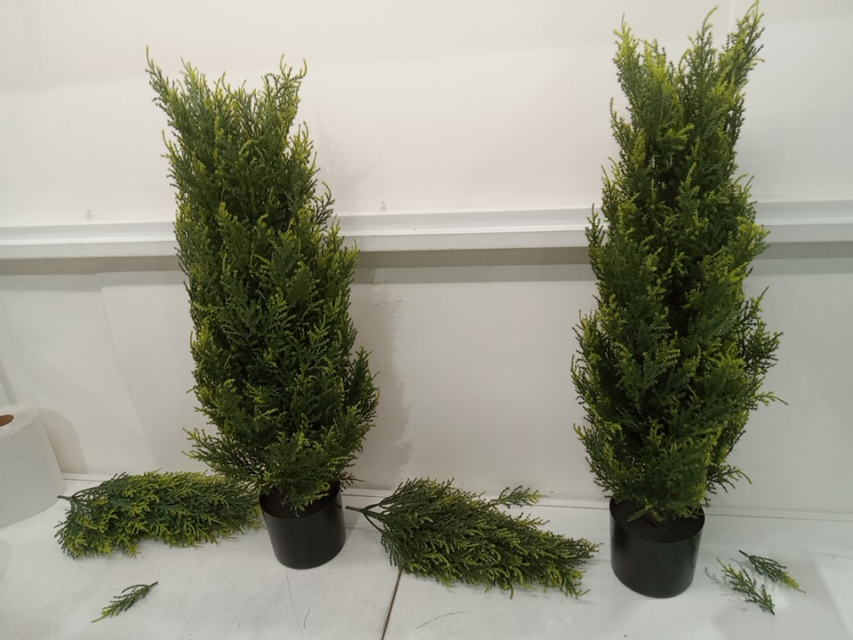 2PK ARTIFICIAL CEDAR TOPIARY TREES - 4FT - GREEN WITH BLACK POT