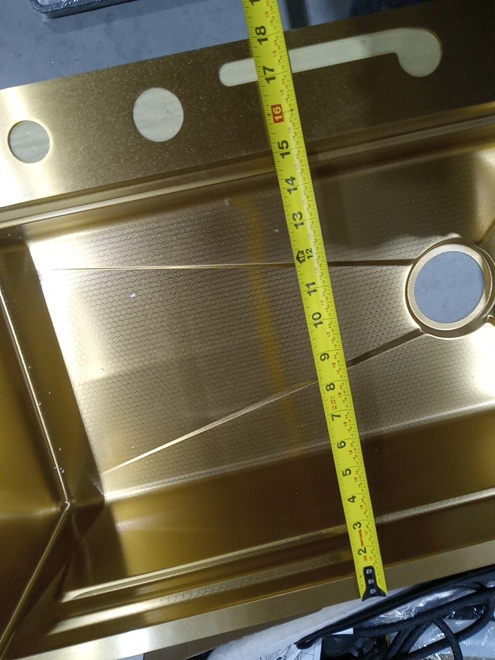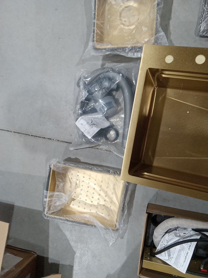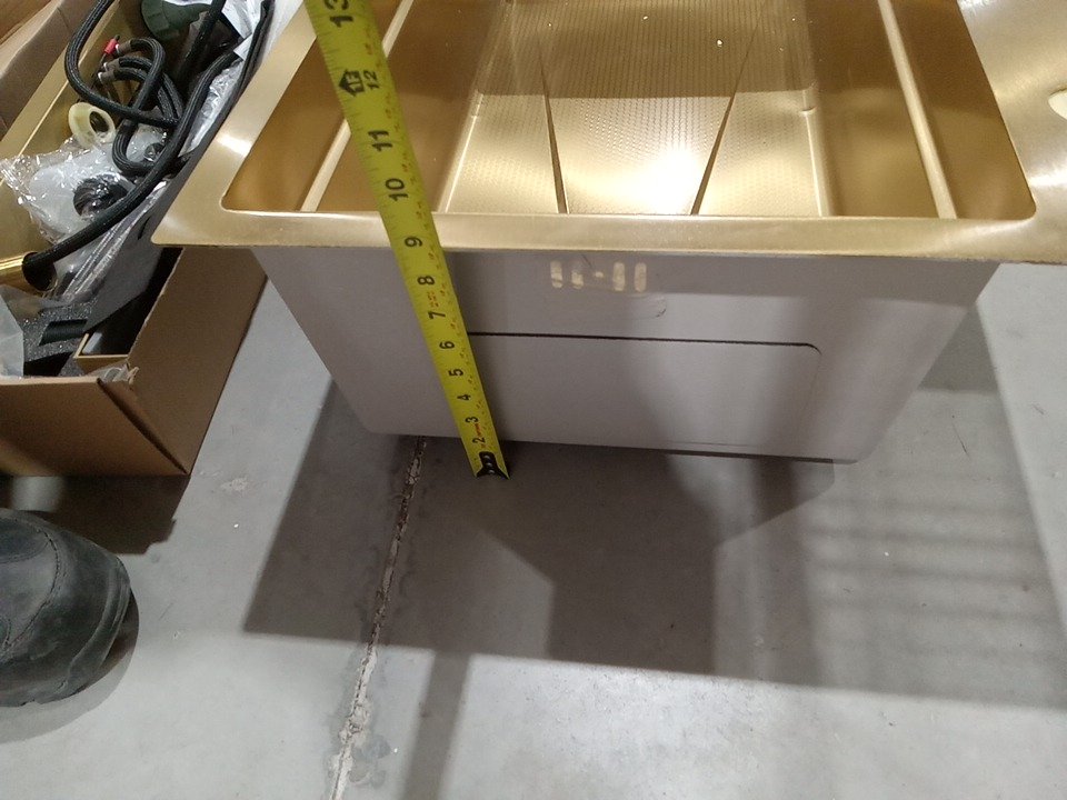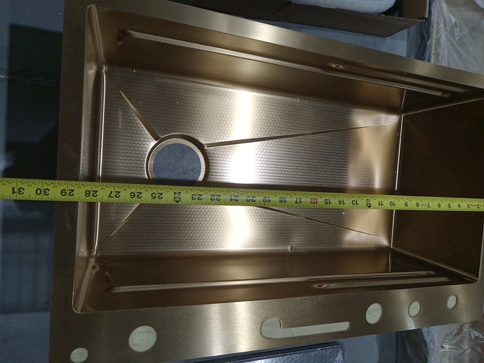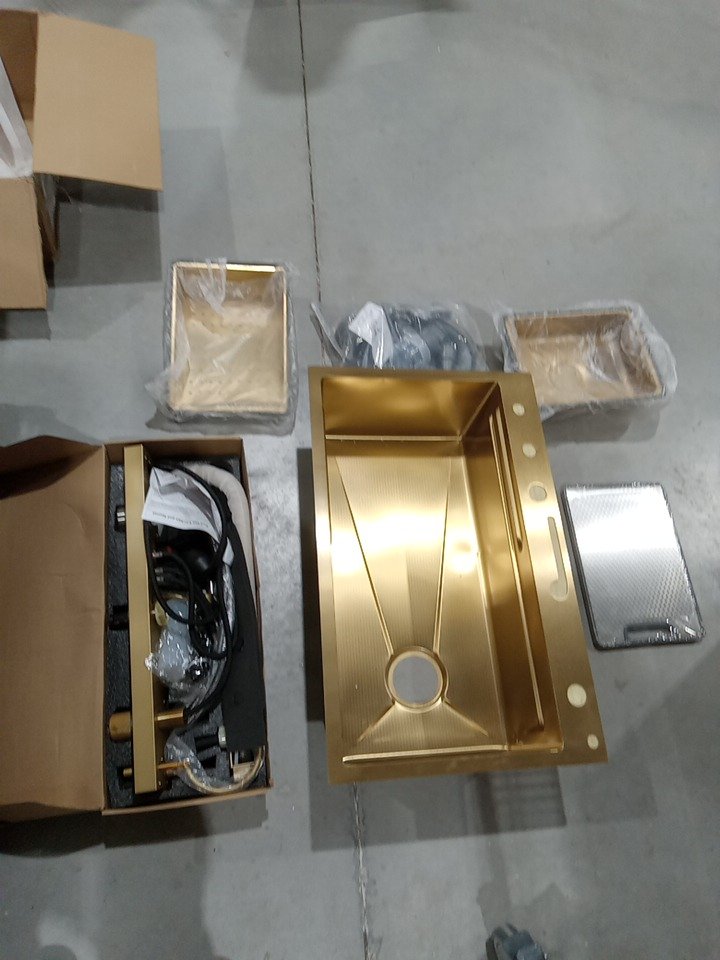 saetow stainless steel kitchen sink with waterfall tap, soap dispenser and pull out sprayer and led temperature display - glass cleaner, pull-down faucet, and piano key controls - 29.5" x 18" - brushed gold (model: 7546)