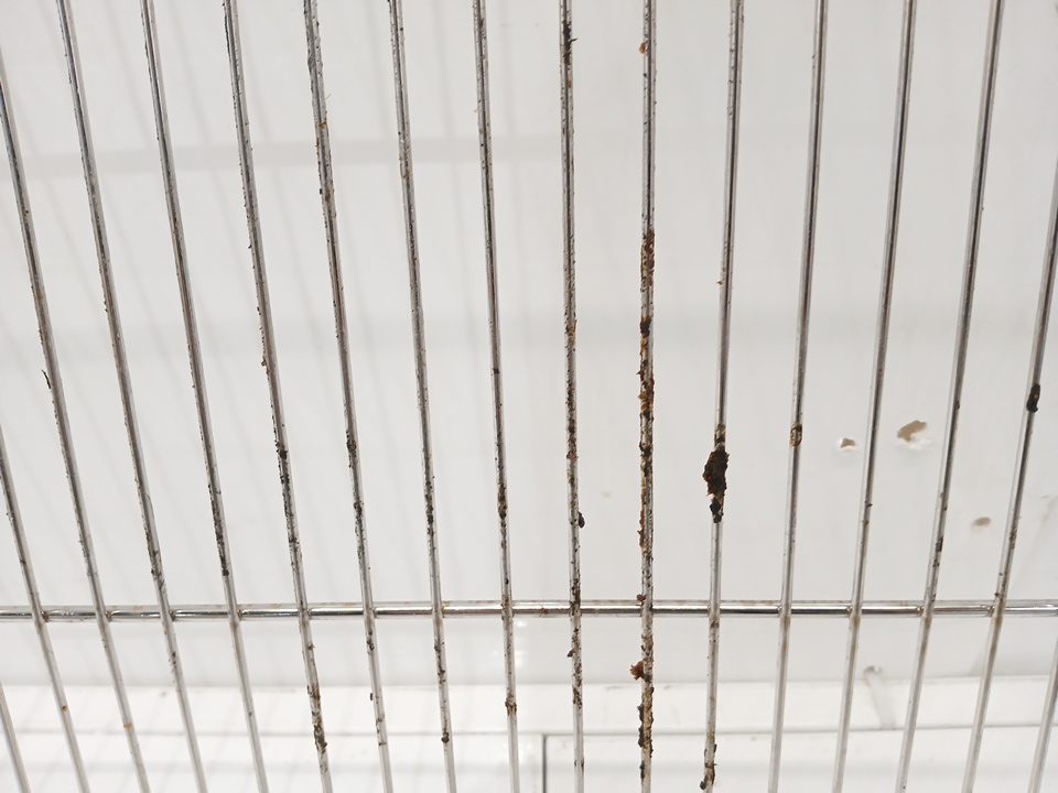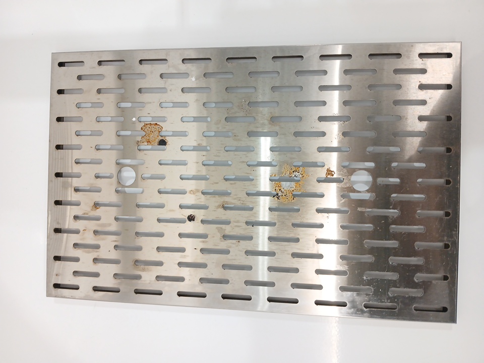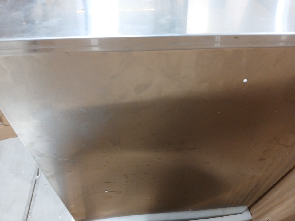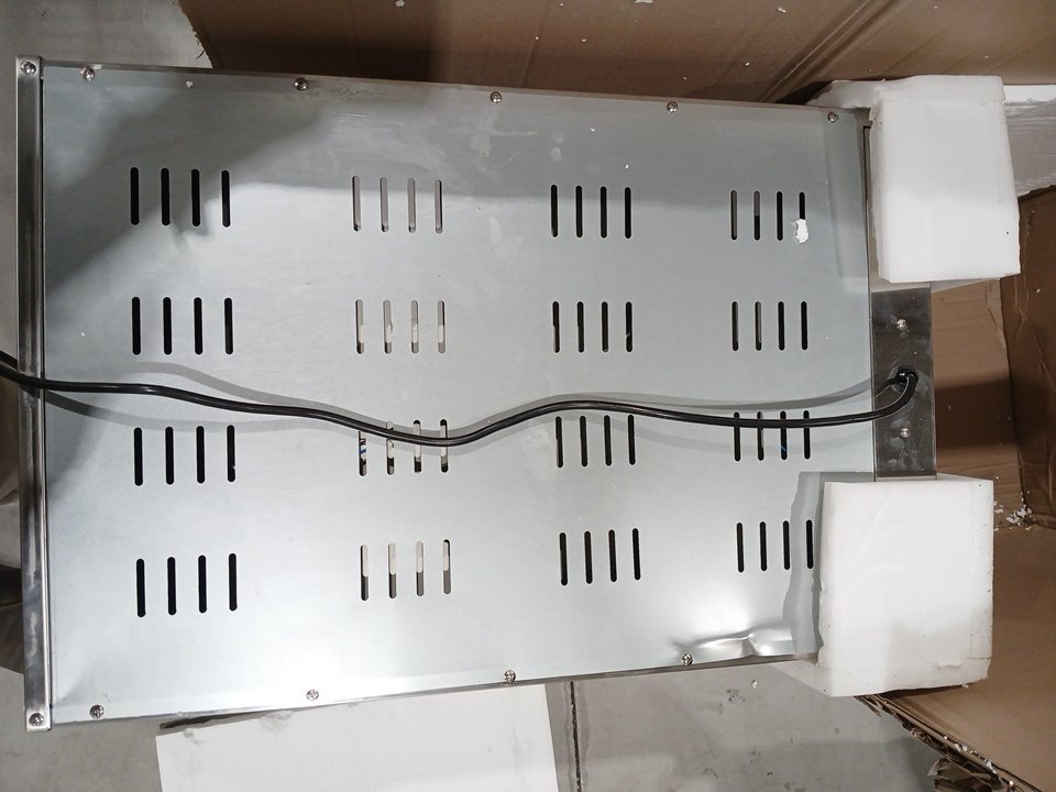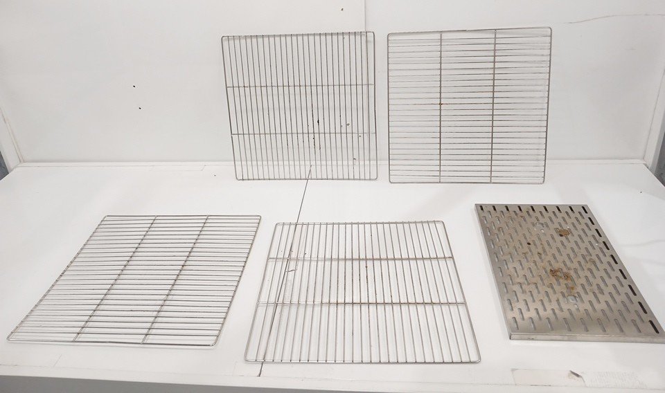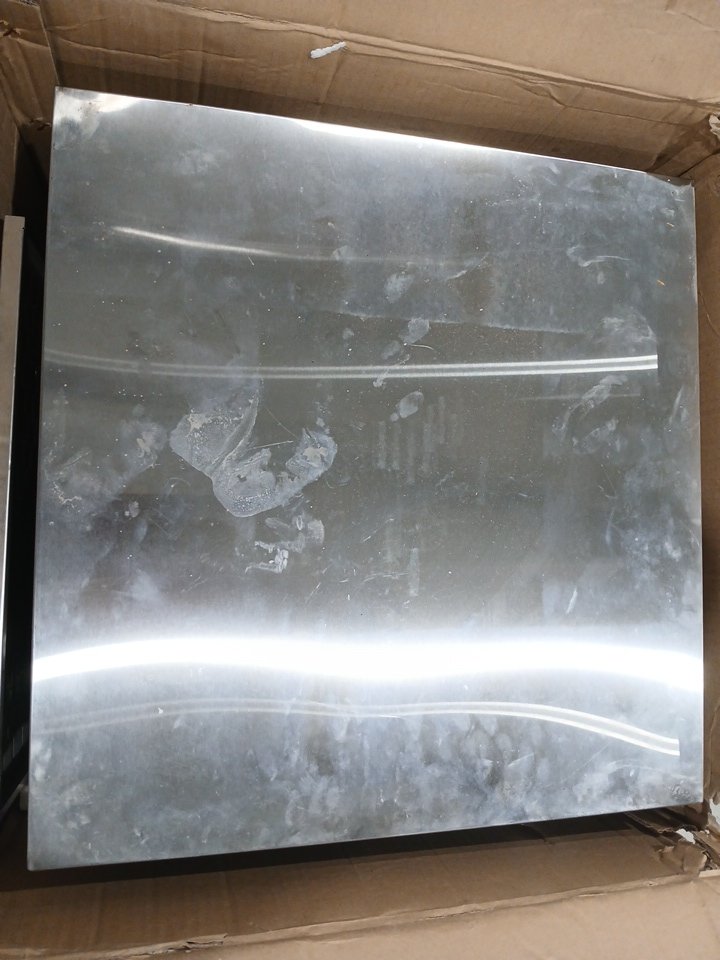 This item has a lot of finger marks on its metal, is dirty, the racks have burnt food remains, and there is a scratch on the glass door. This item has been tested for power.