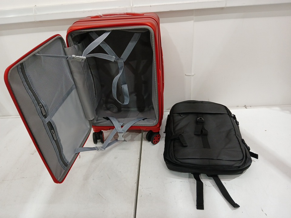 sinuoso carry on luggage with tsa lock, wheels, and backpack - 20" - red/black