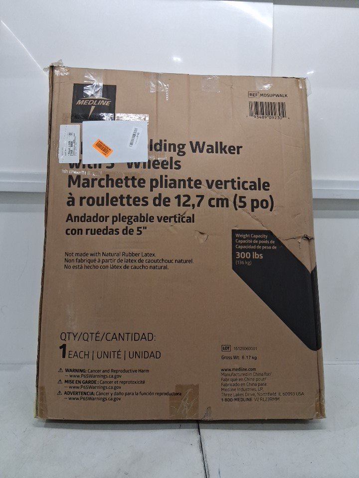 medline upright folding walker - 300lbs capacity - 38.7" to 45.6" x 18" - silver