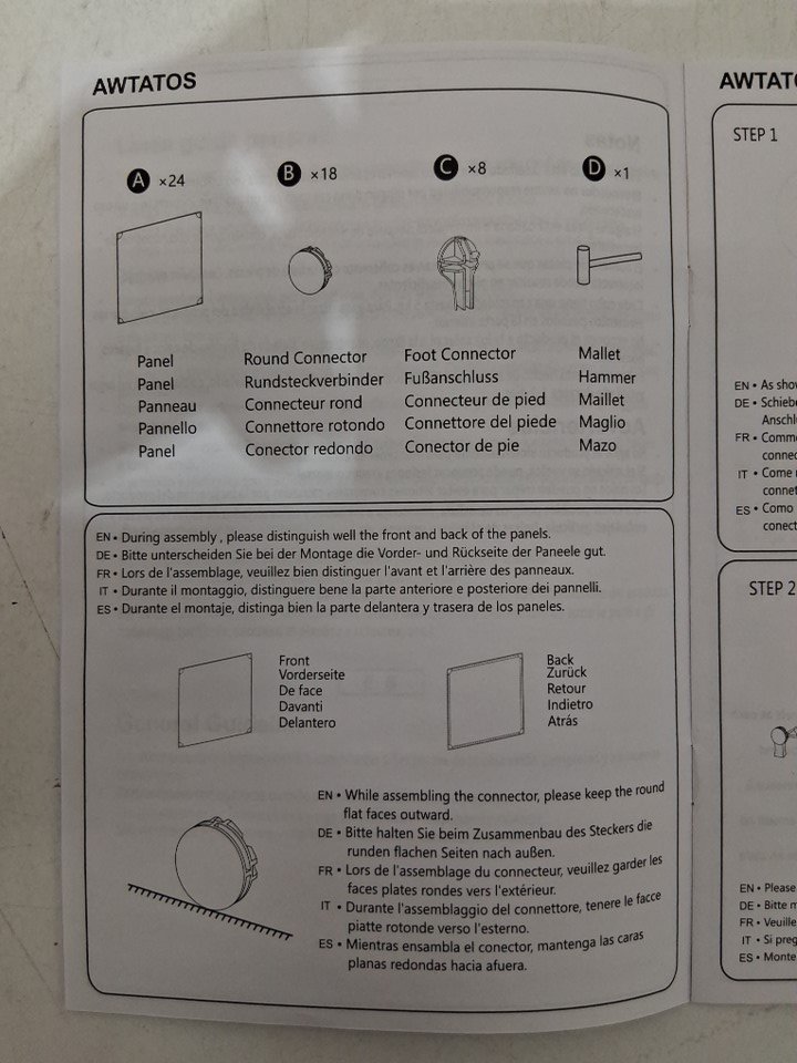 Hand counted 24 Panels There appear to be more black plastic joints than what specified in the manual. These could be replacement pieces in case of damage.