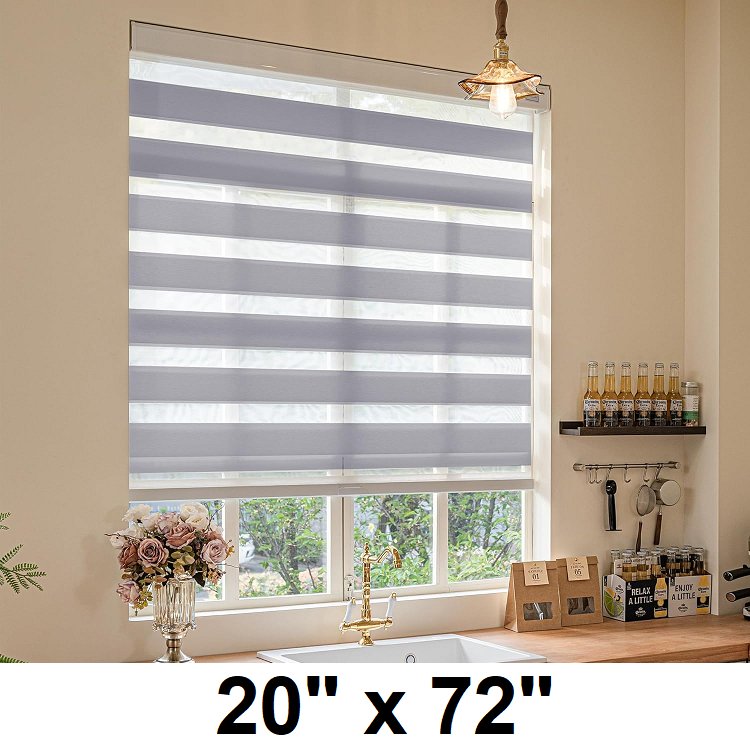 curlonger cordless zebra blinds curtains - 20" x 72" - grey (MODEL: 02-grey)