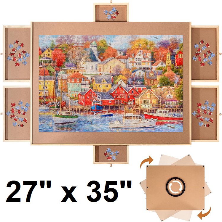 annlov rotating puzzle board with 6 drawers and cover - fits 1500pc puzzles - 27" x 35" - brown (MODEL: ‎ANN-PB-6-1500)