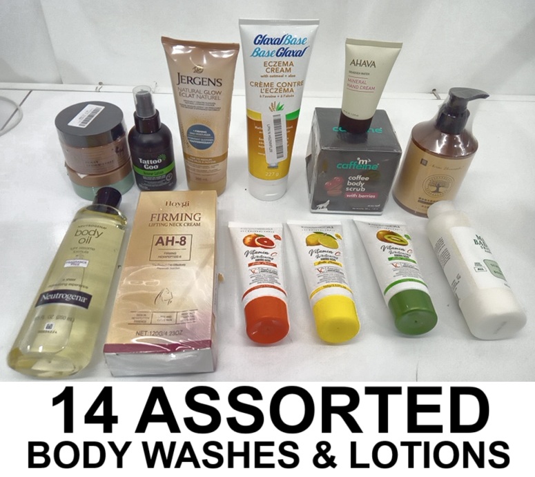 14 assorted body washes & lotions - assorted scents , brands & sizes