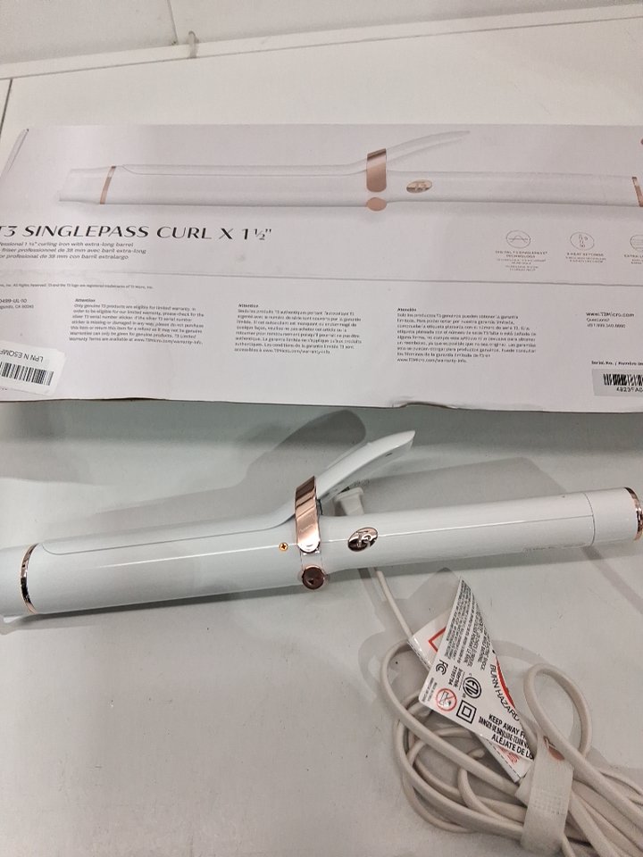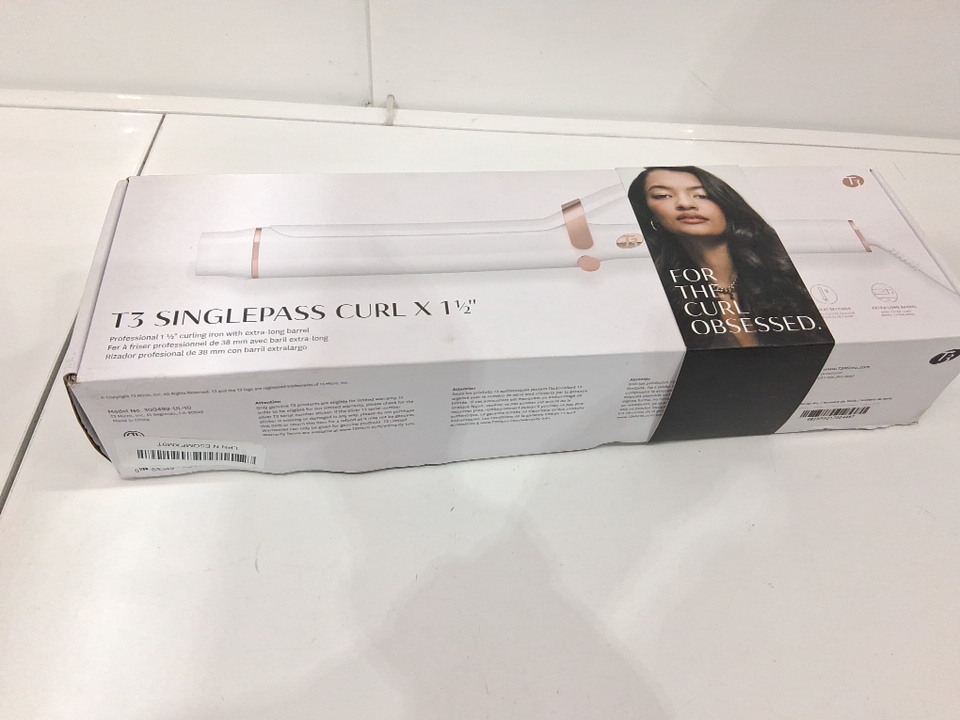 T3 SINGLEPASS CURL 1 1/2" PROFESSIONAL CERAMIC CURLING IRON - WHITE/ROSE GOLD (MODEL: 77545).
