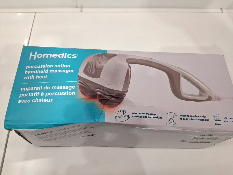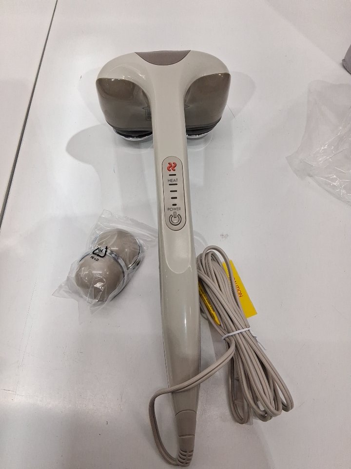 HOMEDICS PERCUSSION ACTION HANDHELD DUAL-HEAD MASSAGER WITH HEAT & 4 VIBRATION SETTINGS - Beige (MODEL: HHP-350C-CA)
