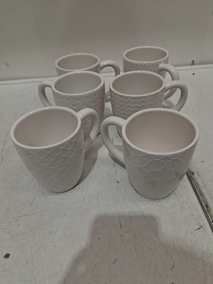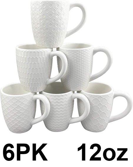 6pk Ceramic Stylish Embossed Coffee Mugs - 12oz- white
