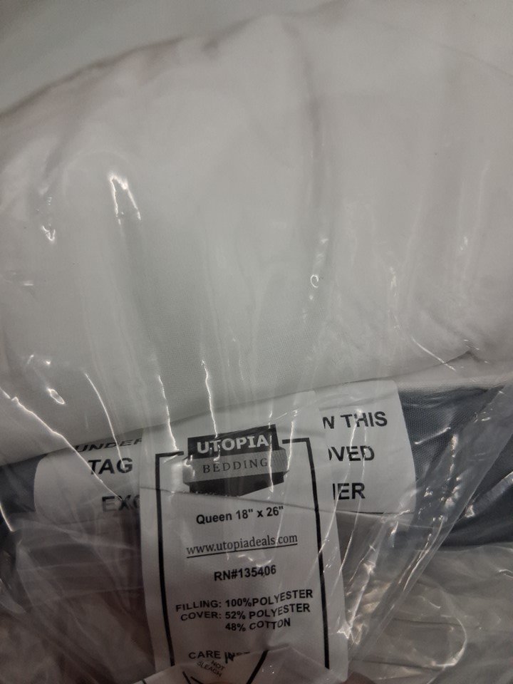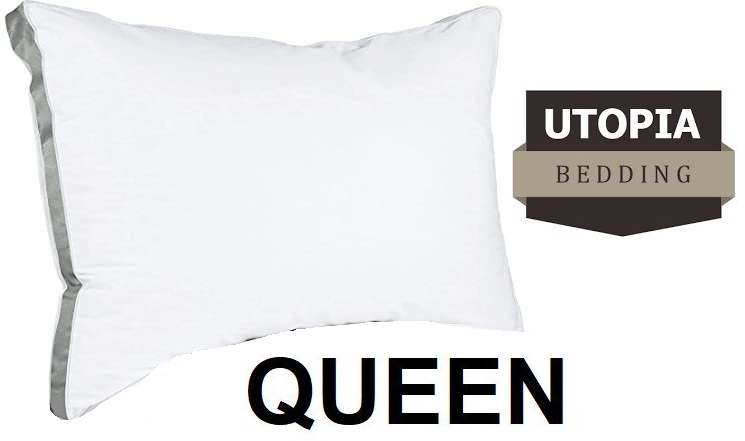 UTOPIA BEDDING GUSSET BED PILLOW - QUEEN - 18" x 26" - WHITE/GREY