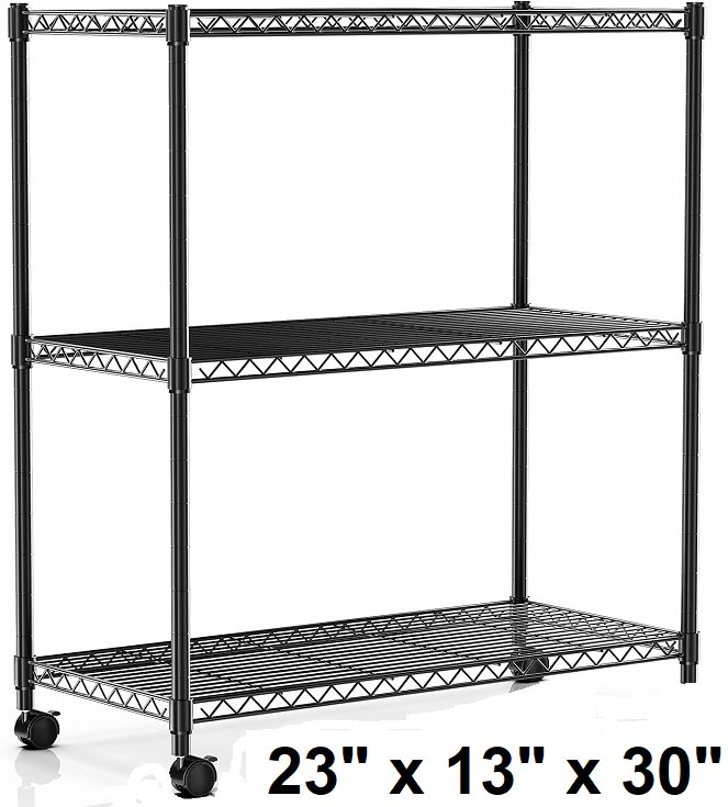 Simple Deluxe Heavy Duty 3-Shelf Shelving with Wheels - 23" x 13" x 30" - black (model: HKSHLF23133003BPCLITE)