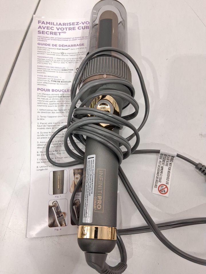 CONAIR INFINITIPRO CURL SECRET CERAMIC AUTO CURLER - 1 1/4" BARREL - GREY/ROSE GOLD (model: CD1032C)