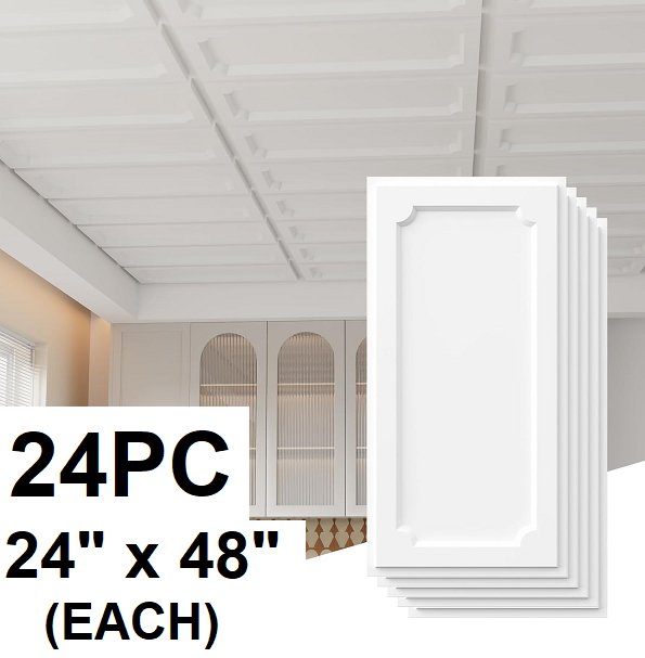 24PC LooYee Drop Ceiling Tiles - 192SQ.FT COVERAGE - 24" X 48" (EACH) - WHITE