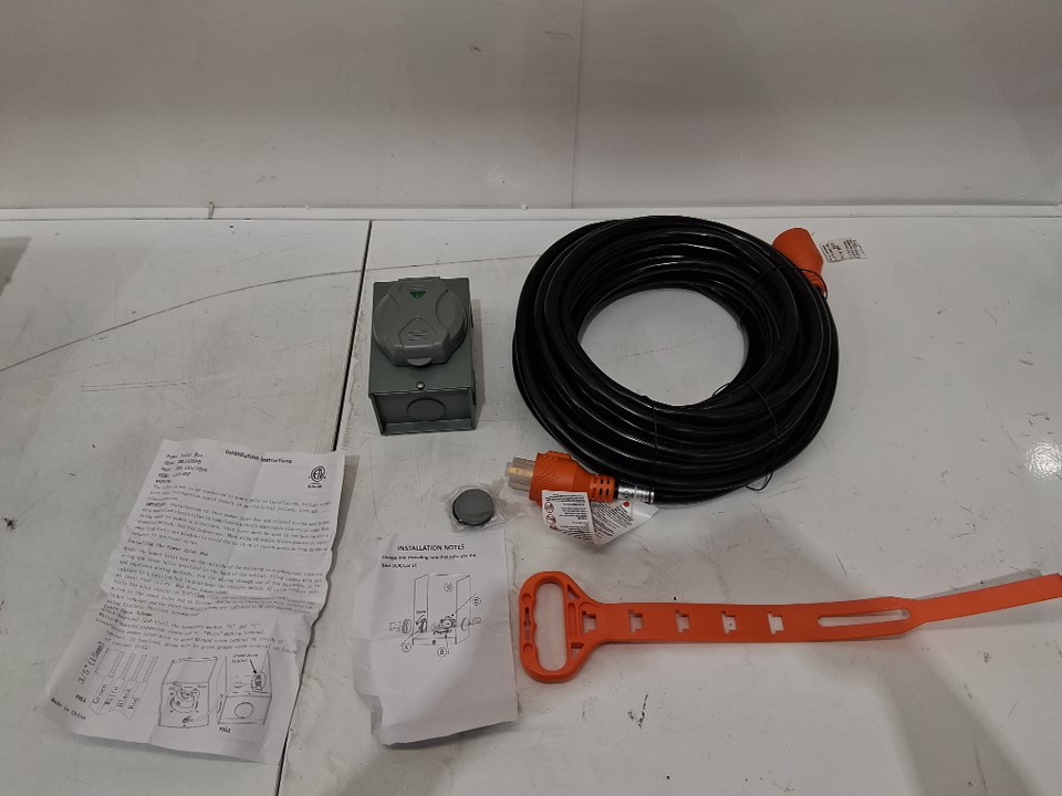 2PC Finderomend Generator Inlet Box and RV Extension Cord - 30 AMP - 50FT - black/orange (model:XNTT30P-A)