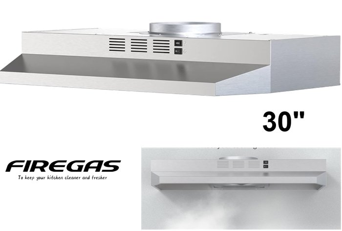 FIREGAS Range Hood Under Cabinet Ducted/Ductless Convertible Stainless Steel Kitchen Range Hood with Rocker Button Control, 2 Speed Exhaust Fan, 300 CFM Aluminum Filter Included - 17.5" x 29.9" x 4.7"