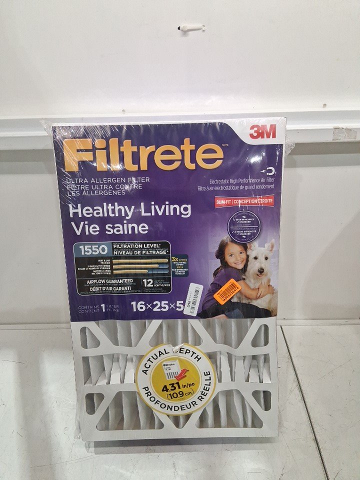 Filtrete Pleated AC Furnace Air Filter Healthy Living Allergen Reduction - 16x25x5 - MPR 1550 - PURPLE