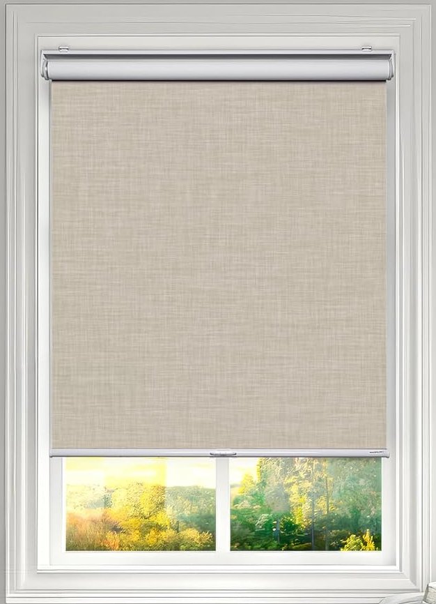 RETRACTABLE ROLLER window blind shade - 49" wide - textured beige / cream