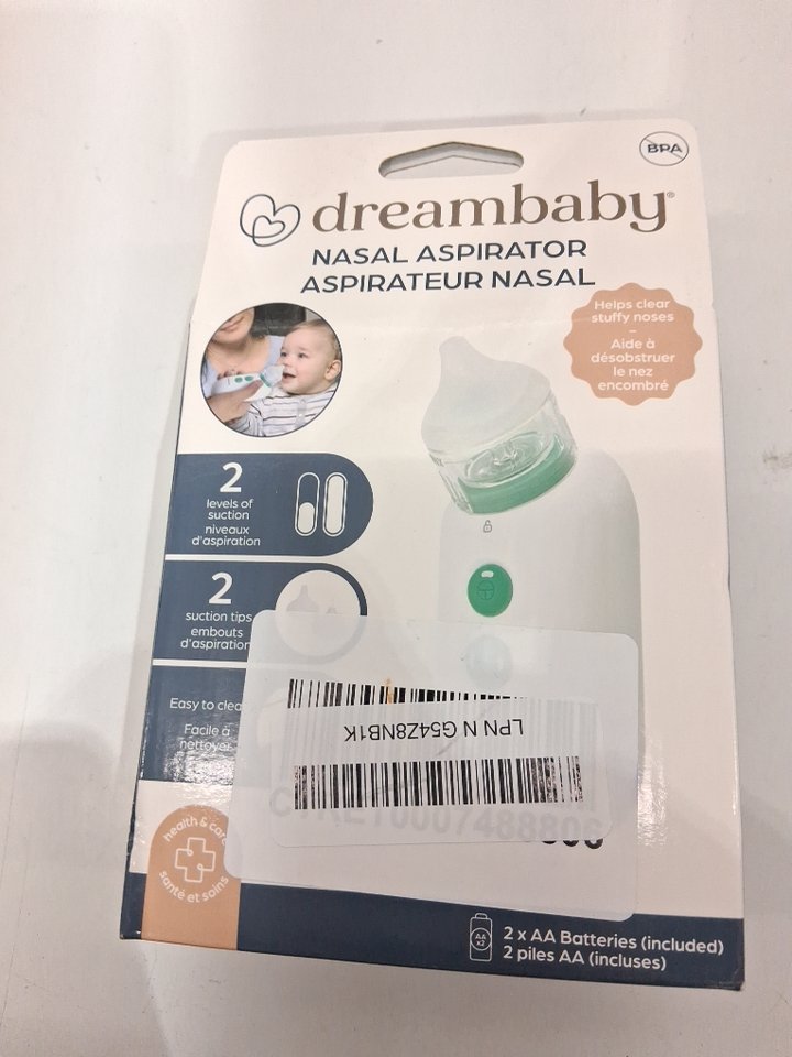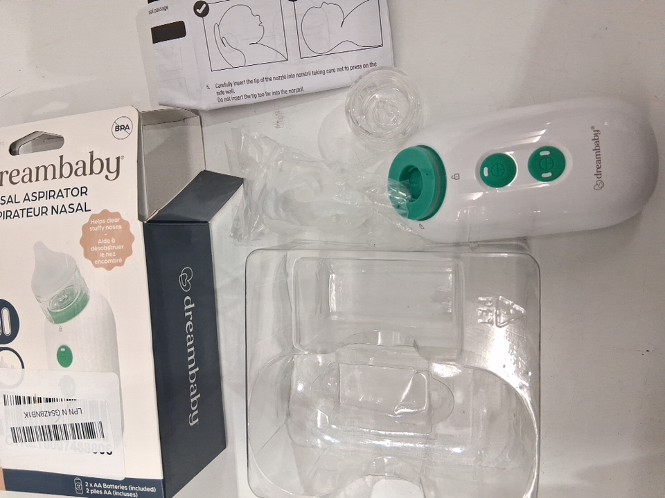 dreambaby battery powered nasal aspirator with 2 Suction Levels - white/green (model: LC377)