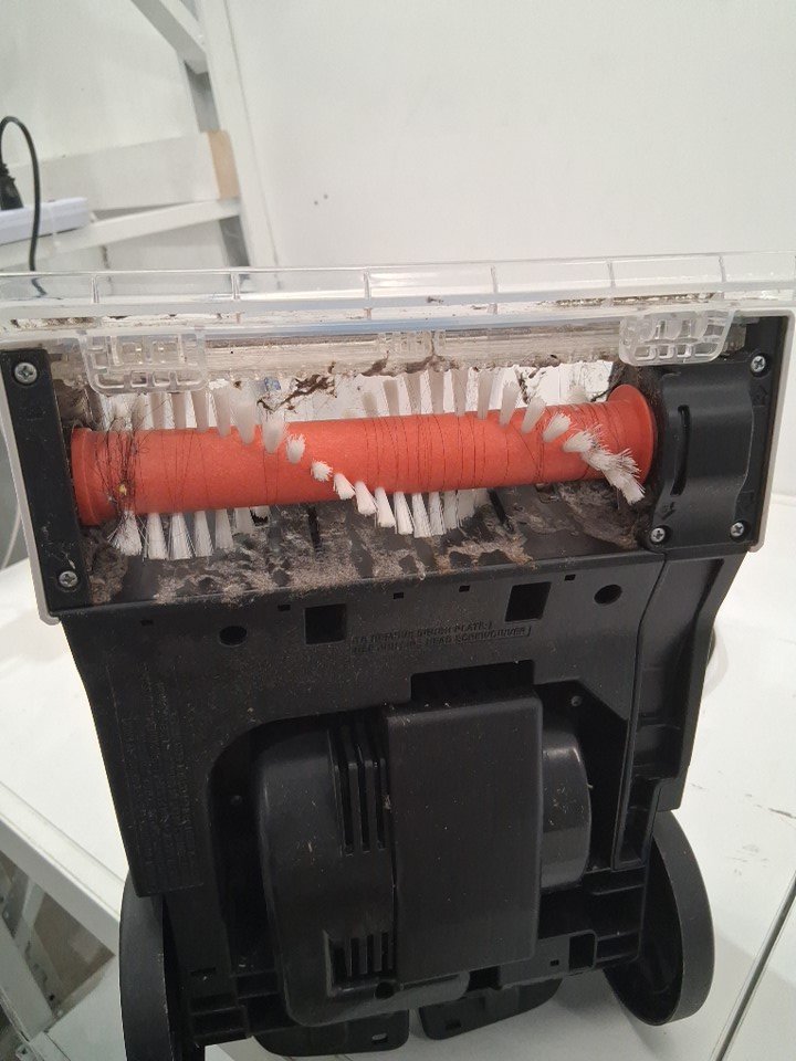 There is a lot of dirt/hair stuck in the roller area, and dirty water and some stains left in the water tank indicating previous use, but there appears to be no obvious damage or other issues with the cleaner, it seems to power on and function as normal - see photos.