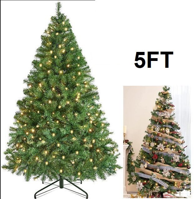 ADUSTABLE HINGED ARTIFICIAL CHRISTMAS TREE WITH lights - 5FT - GREEN