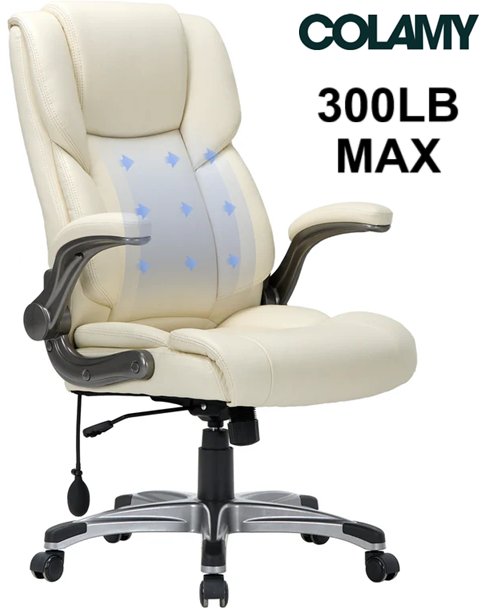 Colamy ergonomic computer office chair with lumbar support - 300lb max - cream white (Model : 2882)