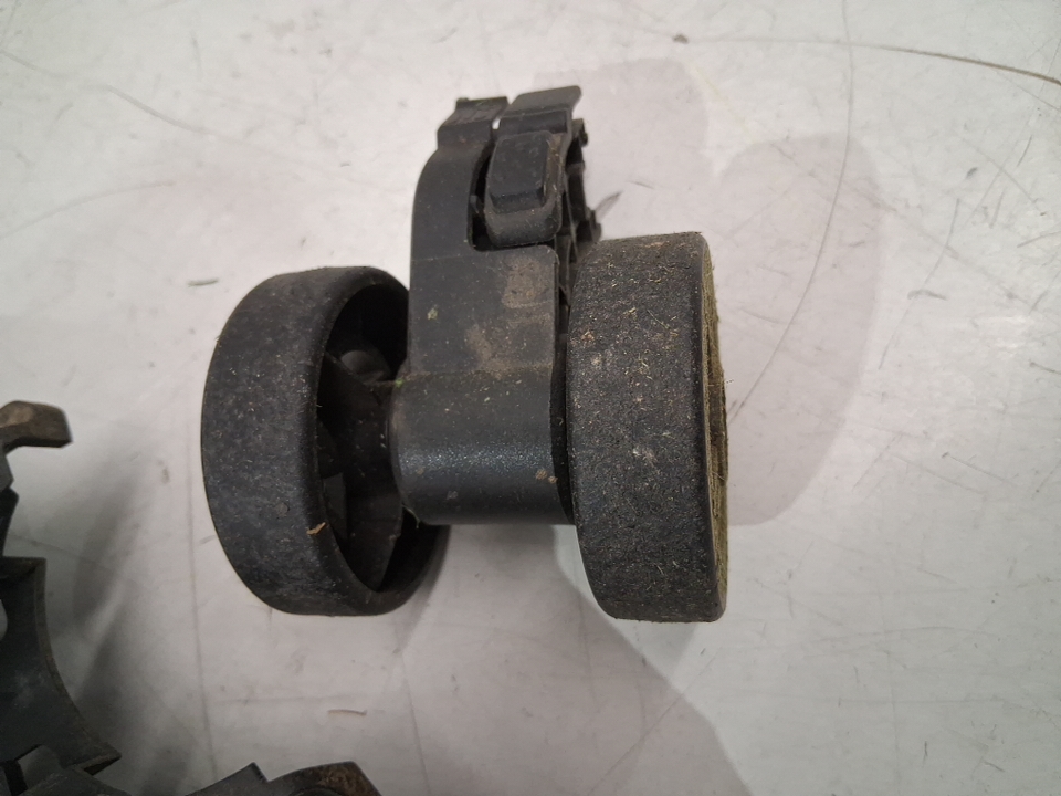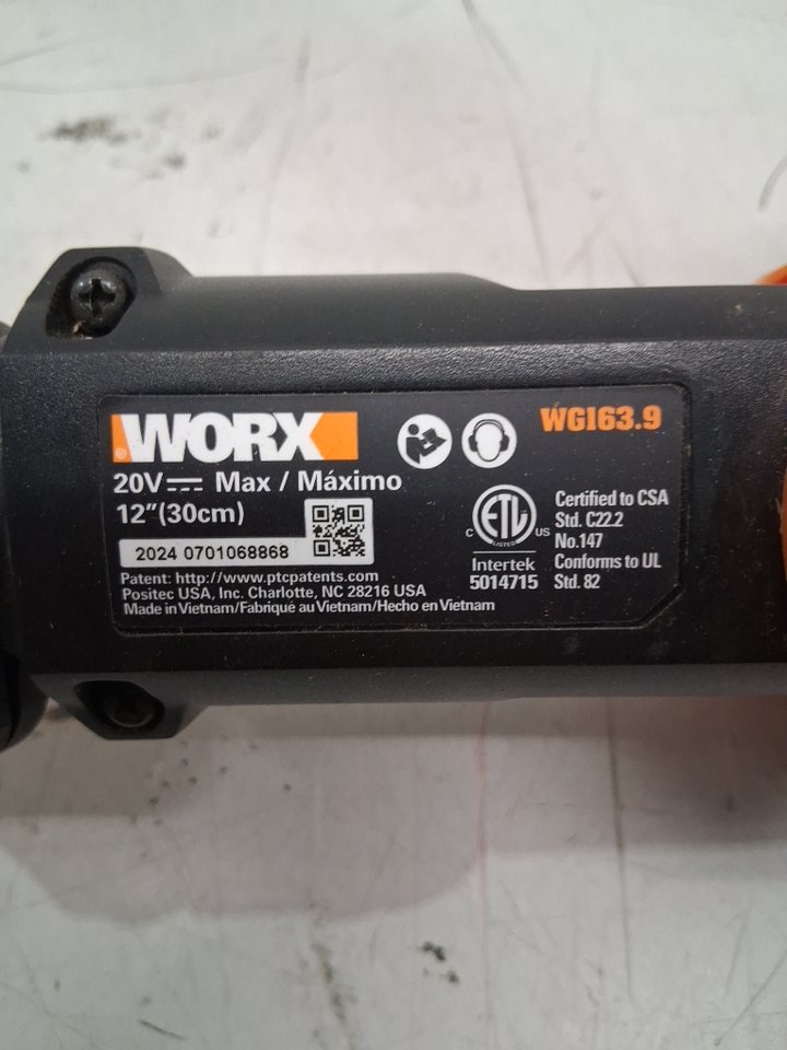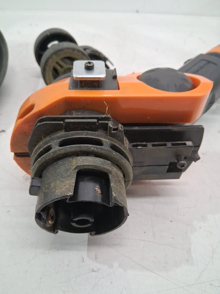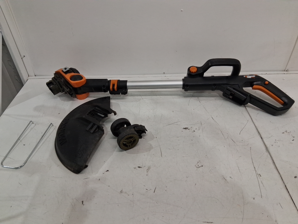 Please note: • The trimmer shows signs of previous use with grass debris around the parts. • No battery is included.