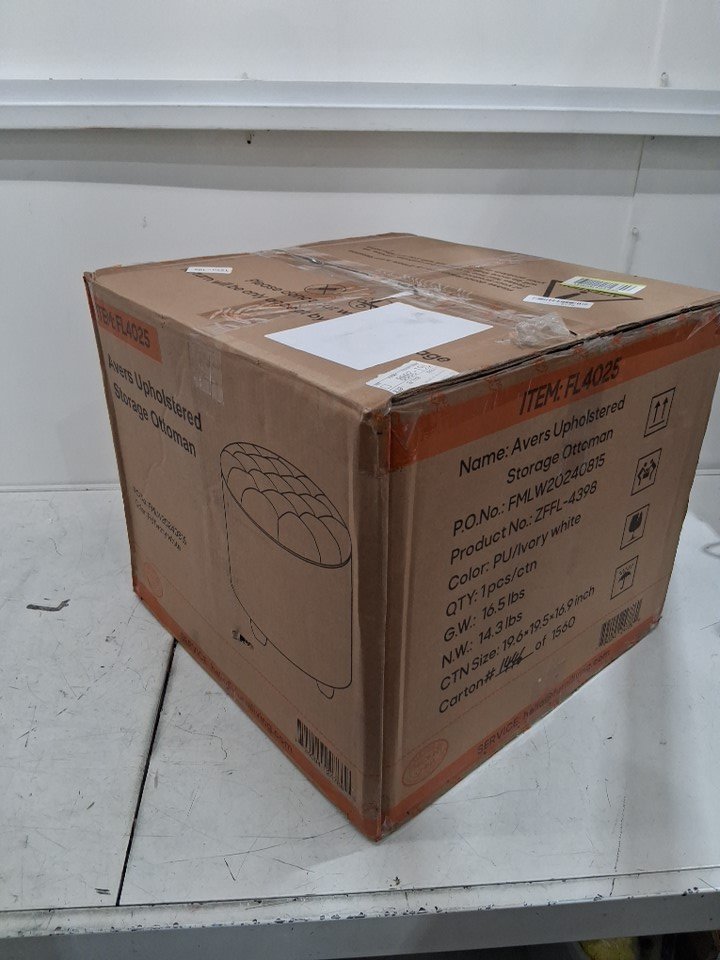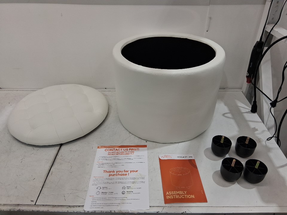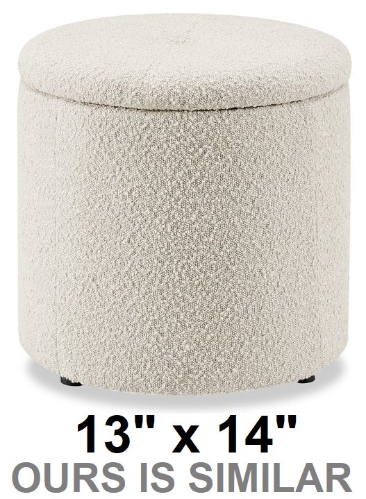 ROUND Fabric Ottoman with storage compartment - 13" x 14" - white
