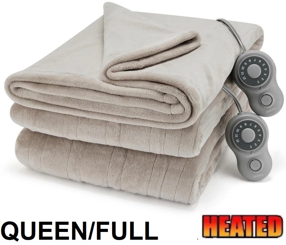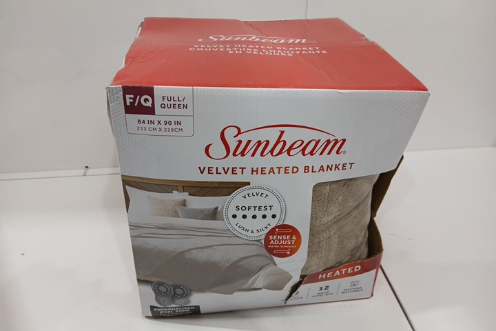 Sunbeam 12-setting velvet heated blanket - queen/full (84" x 90") - beige (model: 13096)