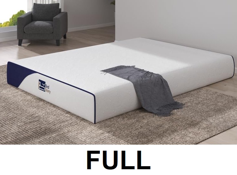 bedstory gel memory foam mattress, supportive high density mattress with cover - full - 6" x 54" x 74" - white (model: F202202)