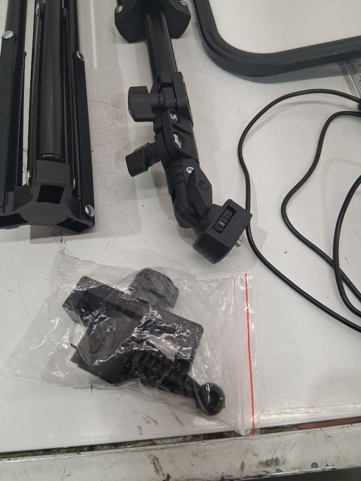 The item is missing one of the phone mounting brackets but this should be replaceable.
