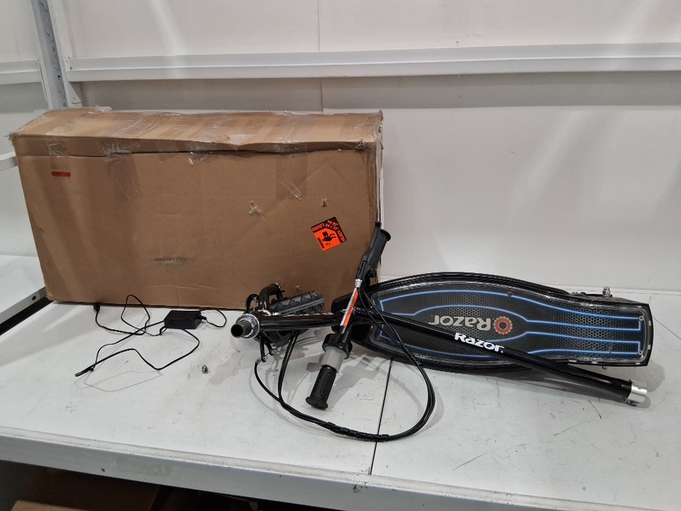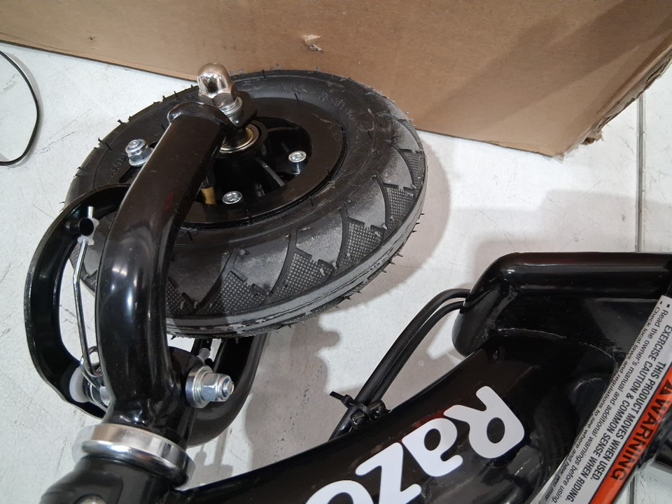 please note the item has some scratches and markings from previous use. tire will need to be inflated before use. tested for power. see photos.