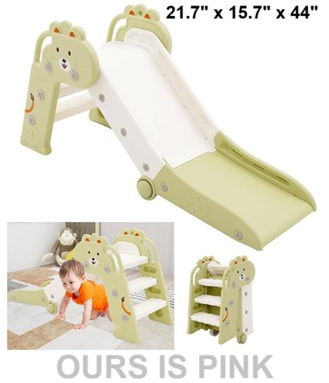 yuleyu toddler freestanding folding indoor/outdoor slide- 21.7" x 15.7" x 44" - Pink (Model: HLHT-01)