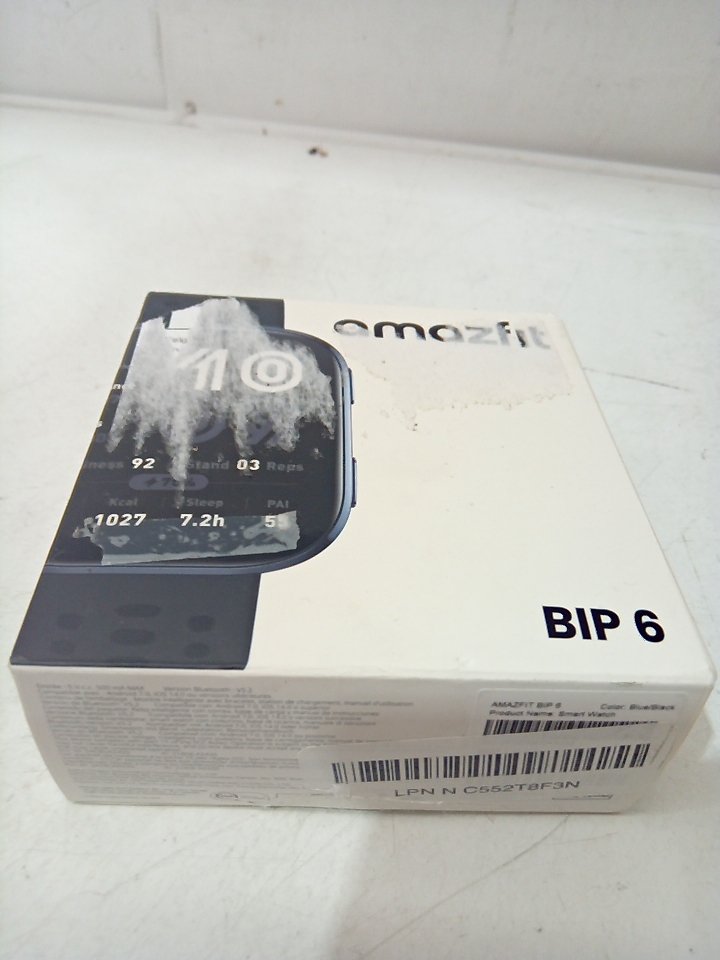 unisex Amazfit Bip 6 Smart Watch fitness tracker - 46mm, 1.97" AMOLED Display, GPS, AI, Bluetooth Call & Text, 140+ Workout Modes, 5 ATM Water-Resistance - Blue/Black (model: a2435)
