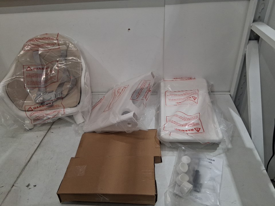 Komcot 6-in-1 baby highchair convertible booster seat with 5 point harness - beige/white/wood (model: mz502)