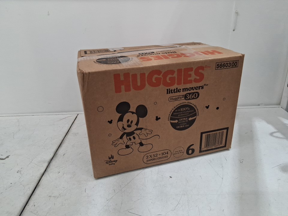 104PK HUGGIES LITTLE MOVERS disney baby DIAPERS - SIZE 6 (over 35lb)