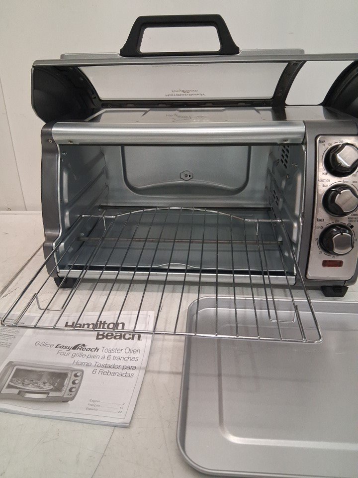 HAMILTON BEACH EASY REACH ROLL-TOP DOOR TOASTER OVEN - 120V - STAINLESS STEEL (MODEL: 31126D)