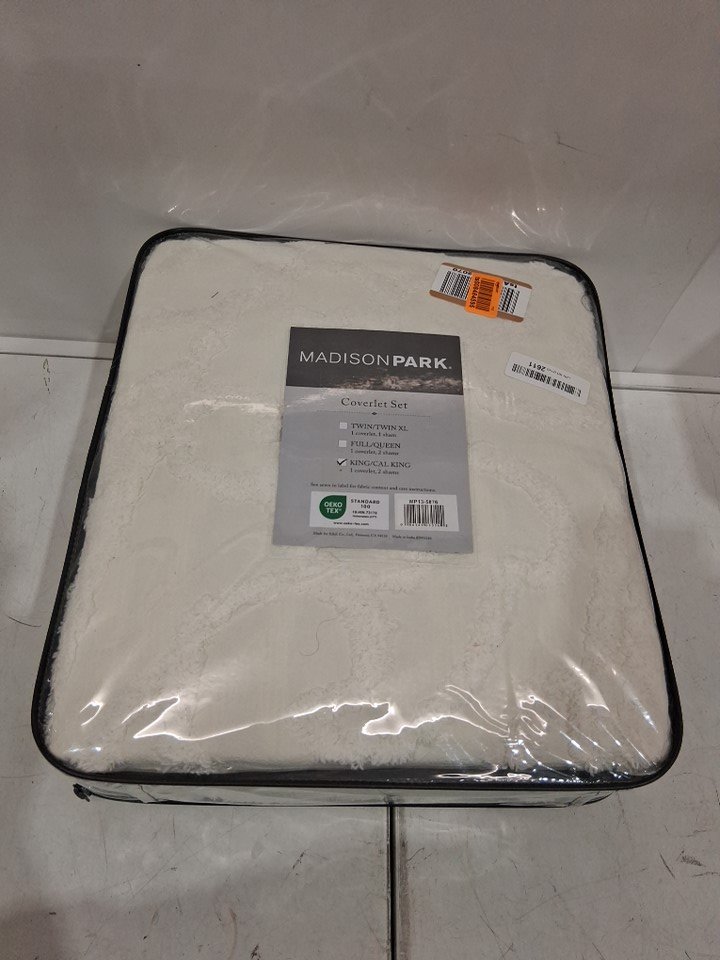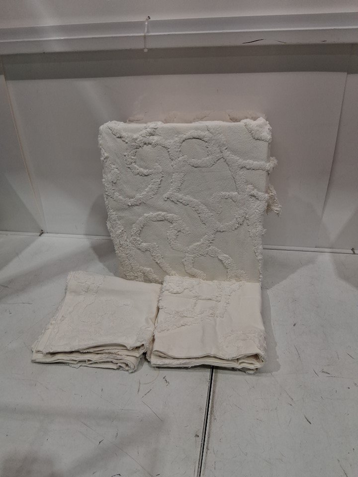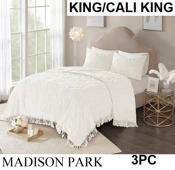 3PC madison park Virginia Off-White Cotton Tufted Chenille Medallion Fringe Coverlet Set - King/Cal King - off white (Model: MP13-5876)