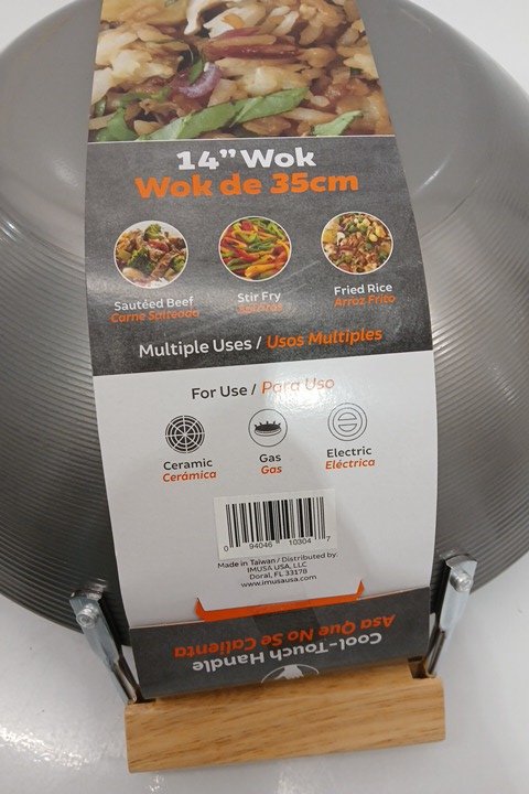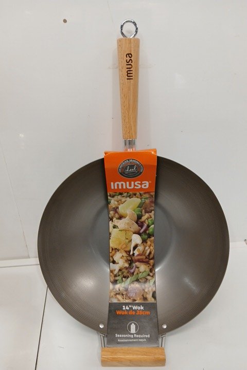 Imusa Carbon Steel Wok with Wood Handles - 14" - black/brown