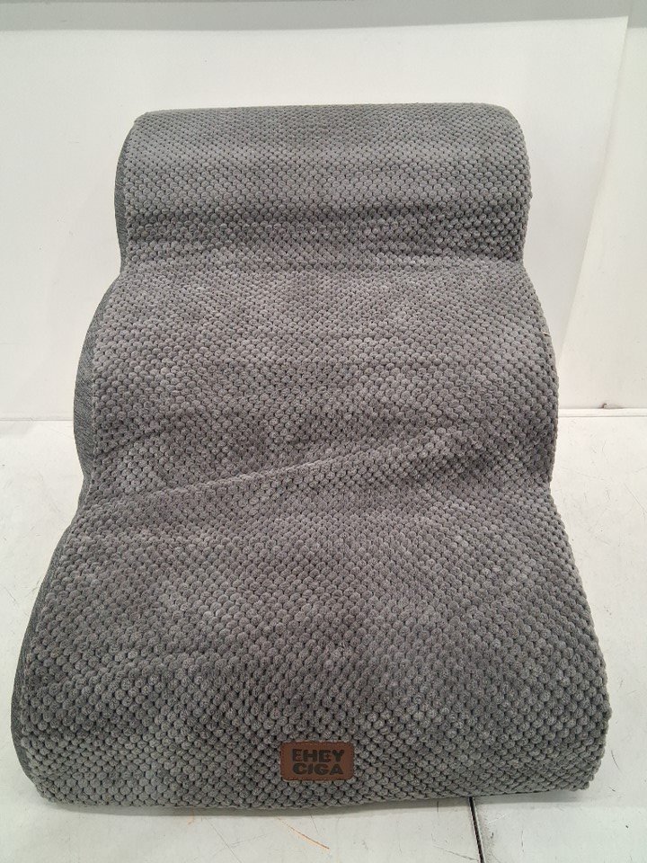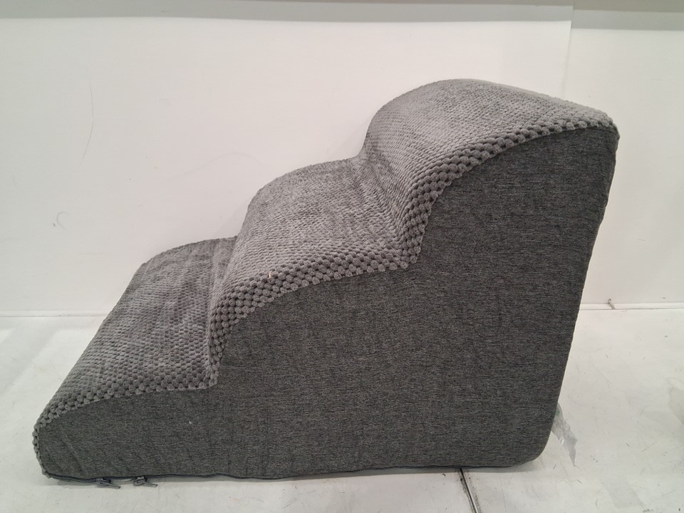 unbranded HIGH DENSITY FOAM EXTRA WIDE 3-STEP PET DOG CAT RAMP STAIRS With removable WASHABLE COVER - 24" X 16" X 15" - GREY CORDUROY