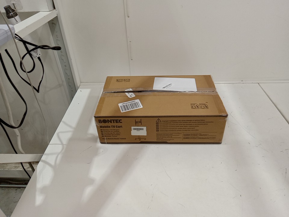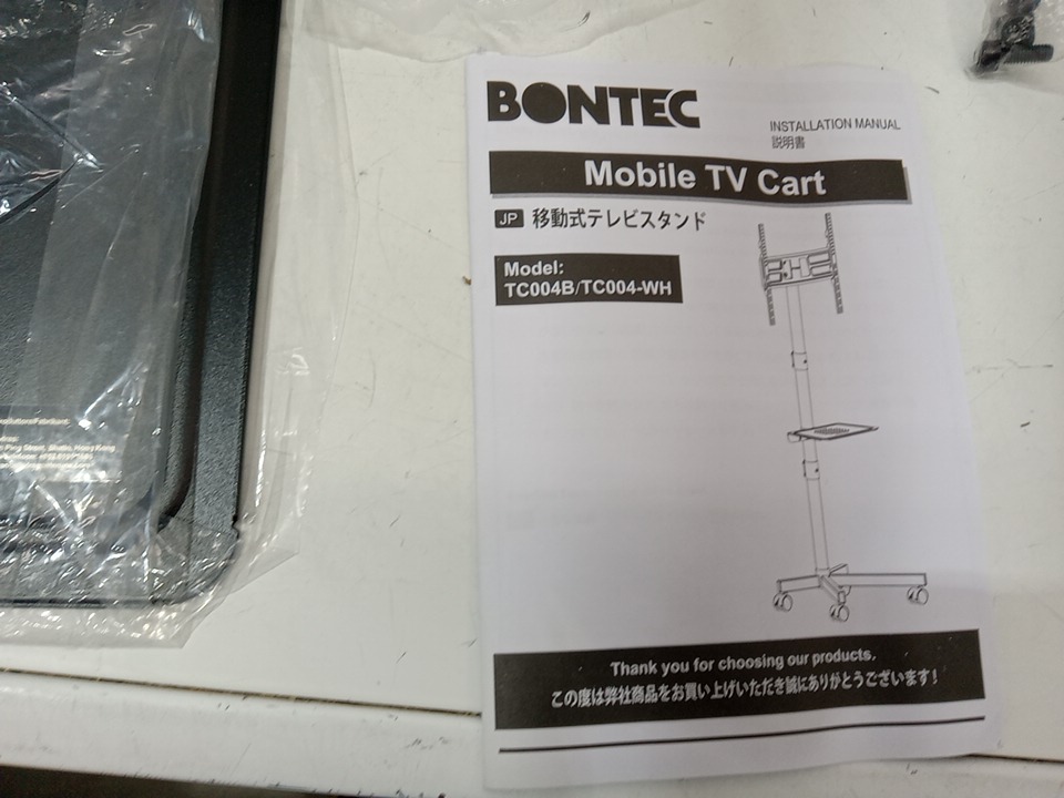 BONTEC Mobile Rolling TV Stand cart with media shelf and locking wheels - for 23-60" Screens, max 55lbs - black (model: tc004b)