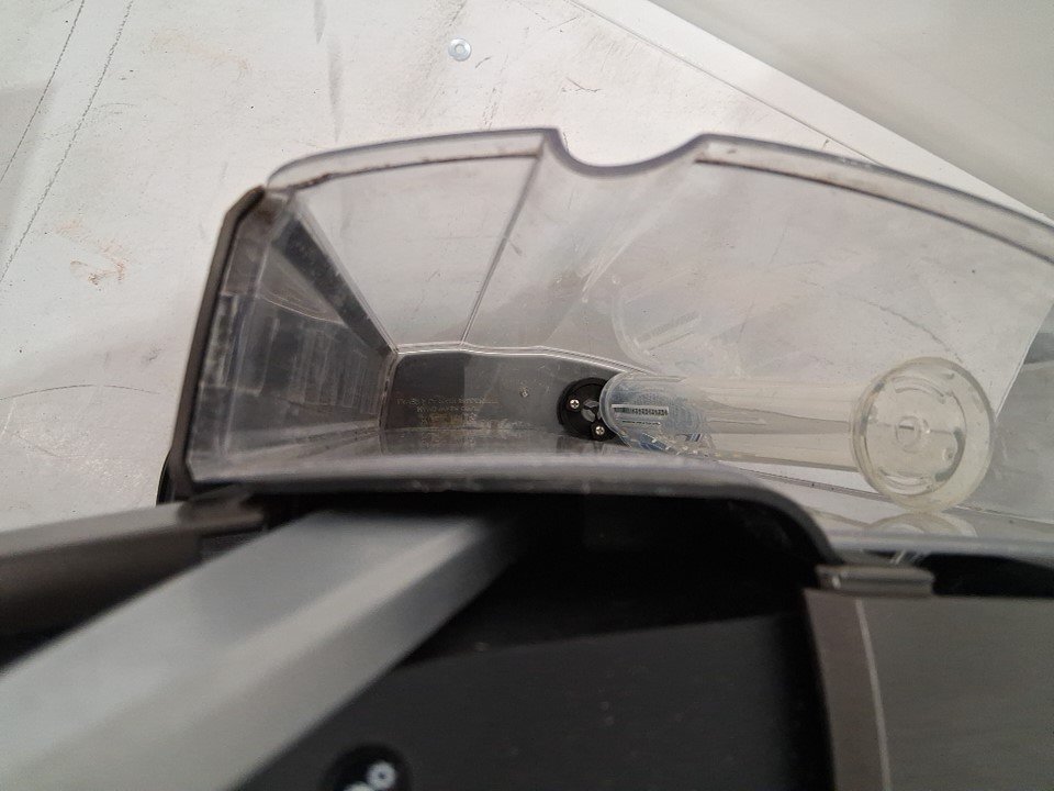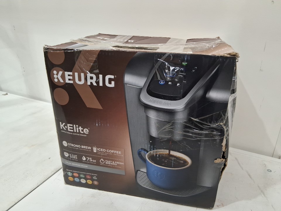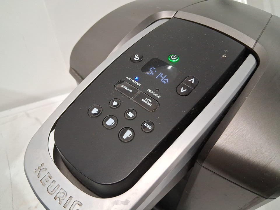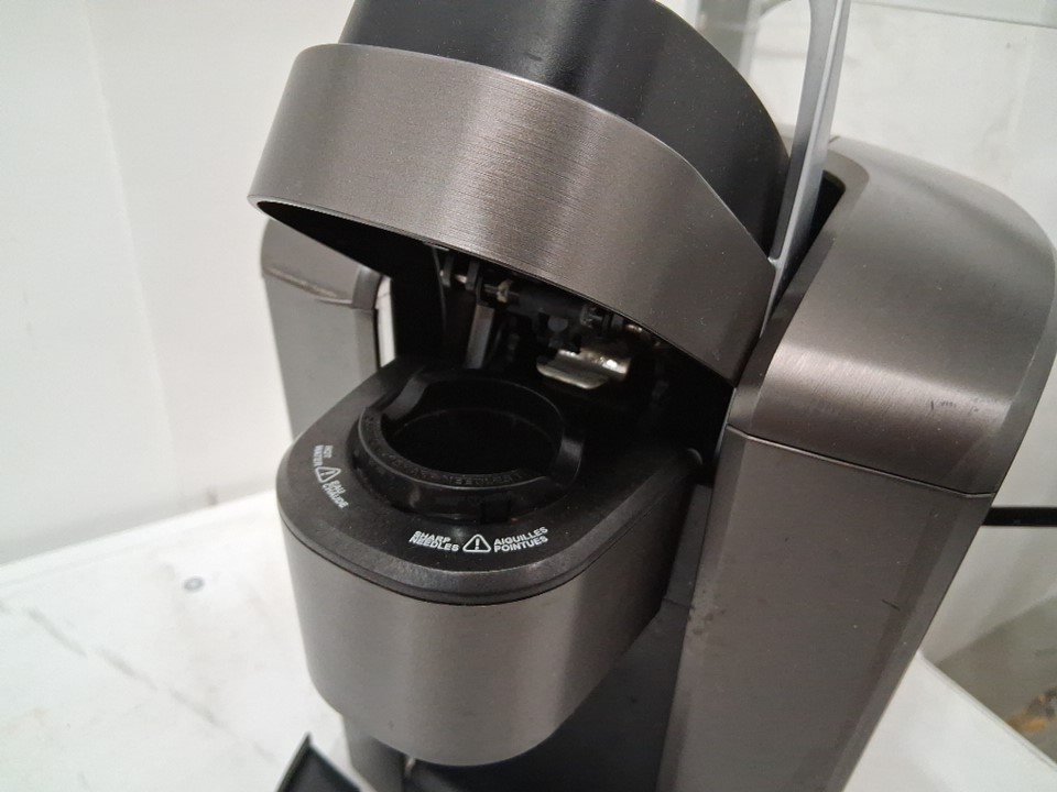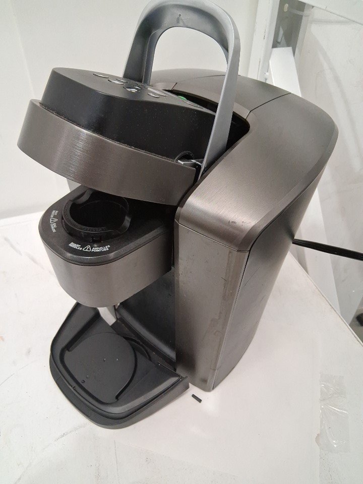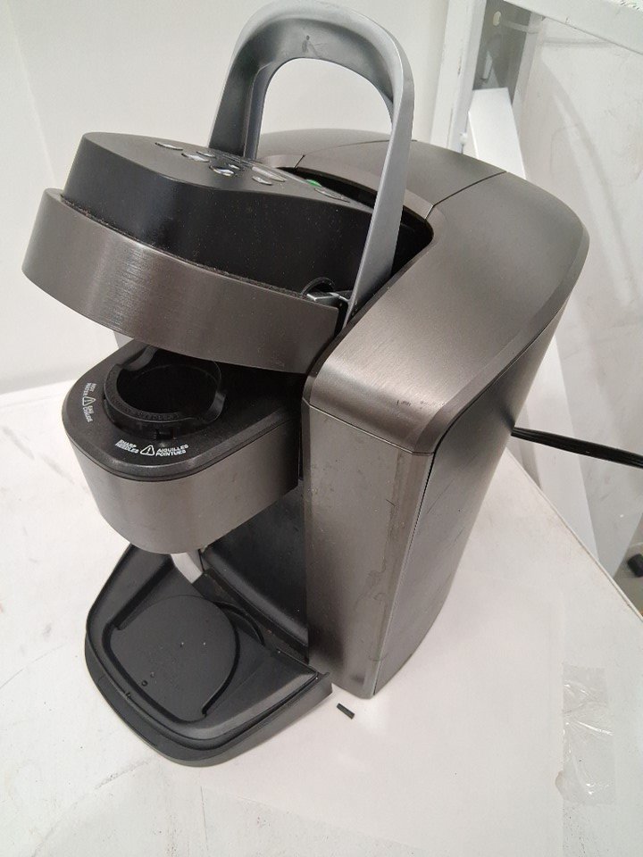 item has scuff marks across it. Hinge for coffee pod holder does not work however item has been tested for power.