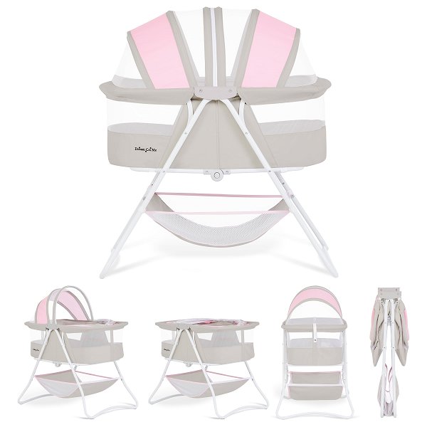 Dream On Me Karley FOLDABLE Bassinet - GREY/PINK (MODEL: 441CA-GP)