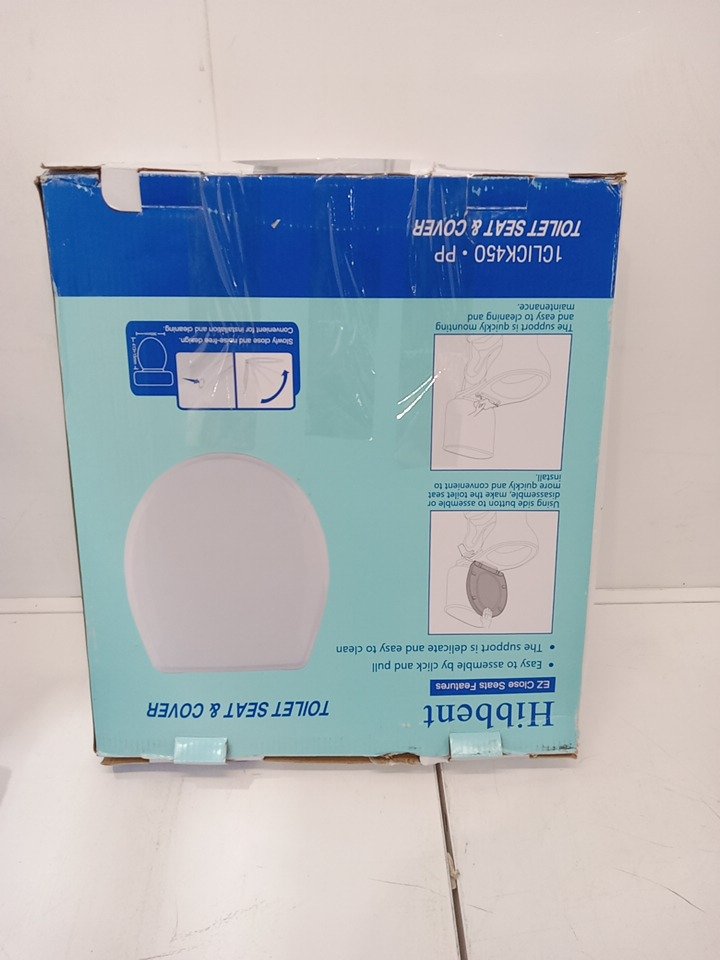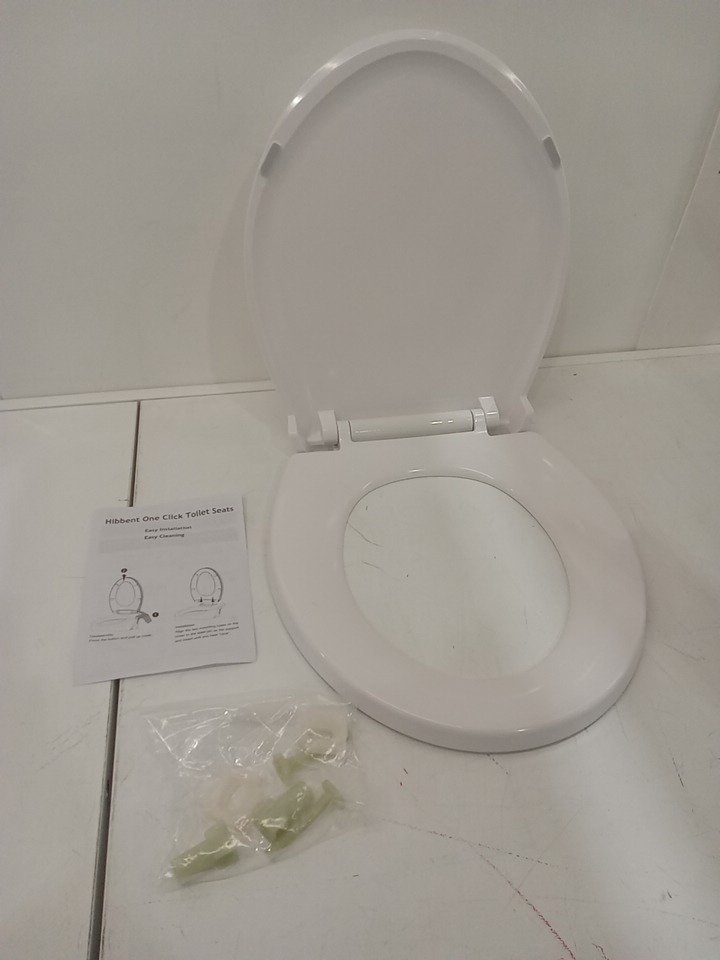 HIBBENT PREMIUM ONE CLICK ELONGATED TOILET SEAT WITH COVER - OVAL - EASY INSTALL AND QUICK RELEASE SEAT FOR EASY CLEAINING - SOFT CLOSE - 18.5" LENGTH - WHITE (MODEL: 1CLICK450)