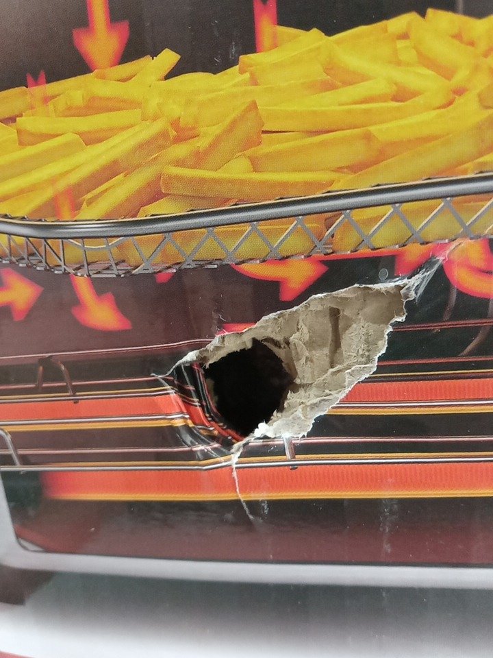 Note: The box got damaged due to shipping, we inspected the damaged area and there is no visible damage or missing parts.