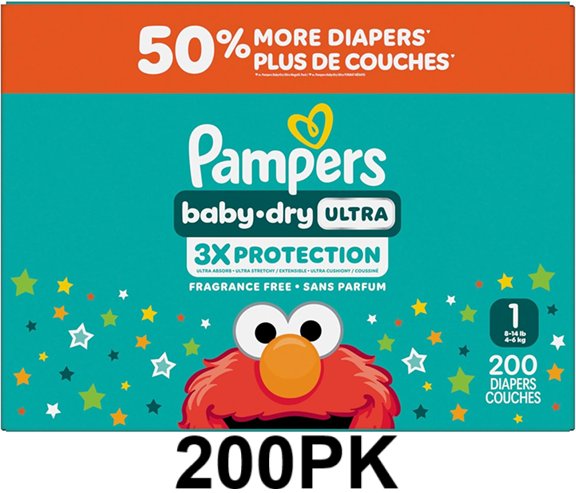 200PK Pampers baby dry ultra - Age 1, Fragrance Free - Elmo