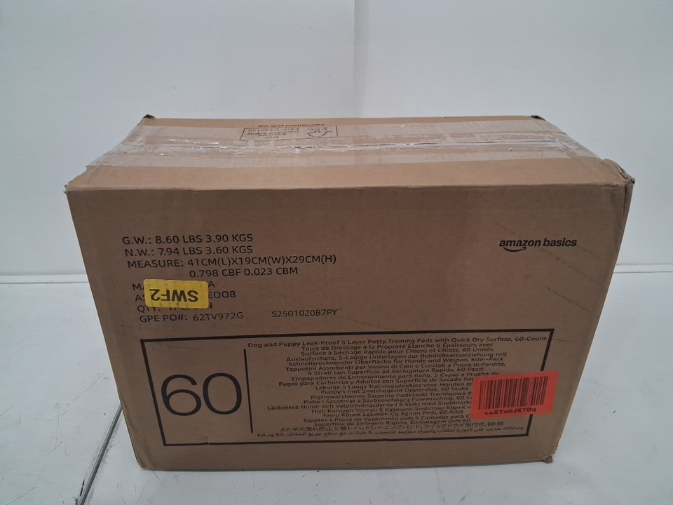60PK AMAZON BASICS DOG AND PUPPY 5-LAYER LEAK-PROOF PEE PADS FOR POTTY TRAINING - 28" x 34"