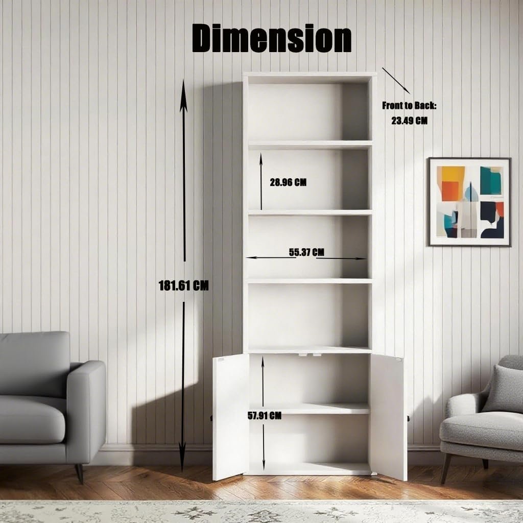 SiliBamb Bookshelf, 6-Tier Open Bookcase with Door, Storage Shelves, Display Storage Shelves, Floor Standing Unit - white